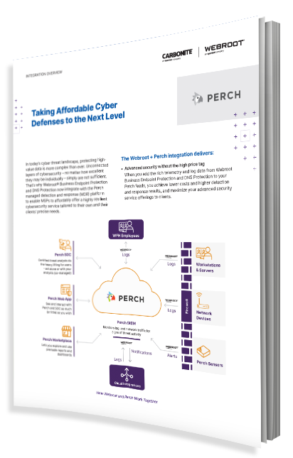 Perch and Webroot are both dedicated to enabling managed service providers and businesses of all sizes to benefit from powerful, actionable threat intelligence, so they can become more resilient against the next generation of cyberattacks.